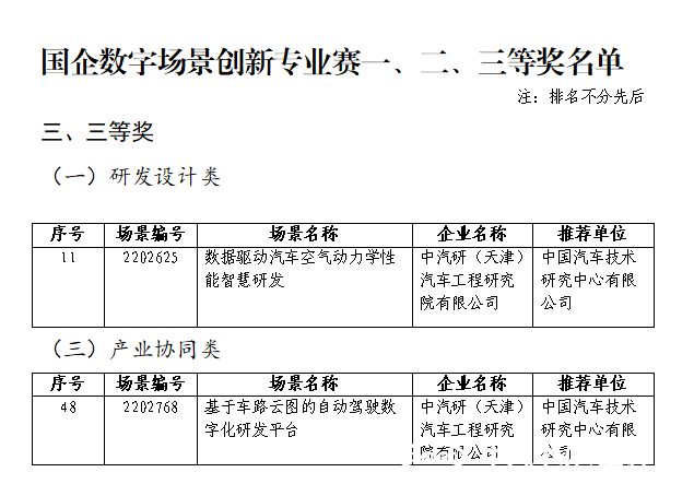 為深入貫徹落實黨中央、國務(wù)院關(guān)于加快數(shù)字化發(fā)展的決策部署,國務(wù)院國資委于2022年舉辦首屆“國企數(shù)字場景創(chuàng)新專業(yè)賽”。中汽研(天津)汽車工程研究院有限公司積極參與此項賽事,最終在兩個參賽場景斬獲佳績——《數(shù)據(jù)驅(qū)動汽車空氣動力學(xué)性能智慧研發(fā)》榮獲“研發(fā)設(shè)計類”賽段三等獎,《基于車路云圖的自動駕駛數(shù)字化研發(fā)平臺》榮獲“產(chǎn)業(yè)協(xié)同類”賽段三等獎。