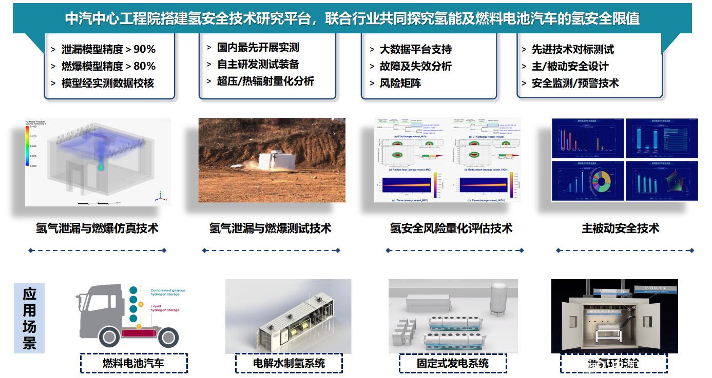 中汽中心工程院在汽車安全領(lǐng)域已有十余年技術(shù)積淀,服務(wù)于氫能產(chǎn)業(yè)應(yīng)用發(fā)展,我們致力于搭建氫安全技術(shù)研究平臺,開展對氫氣泄漏與燃爆的測試與仿真技術(shù)研究,構(gòu)建符合氫能及燃料電池汽車應(yīng)用場景的氫安全風(fēng)險(xiǎn)量化評估體系。