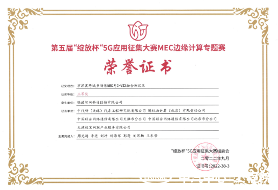 發(fā)布會上,中汽中心工程院作為合作方,見證了“京津冀城市群MEC與C-V2X融合測試床”的正式發(fā)布。此前,中汽中心工程院與中國聯(lián)通合作的“京津冀跨域多場景MEC與C-V2X融合測試床”項目已獲得“綻放杯”5G應用征集大賽獎項。