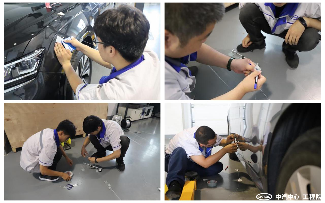 比武活動選擇 2 款車型作為試驗用車,車身左右兩側(cè)對稱位置分別劃定 45個測壓點,參賽人員在 45 個點中隨機(jī)抽取 10 個完成比武任務(wù)。4 人同時進(jìn)行比武,其他人員提供輔助服務(wù)。比武要求在高質(zhì)量完成測壓片安裝任務(wù)的基礎(chǔ)上提升工作效率,并分別制定了相應(yīng)的考核標(biāo)準(zhǔn)。比武過程嚴(yán)格按照實際測試要求進(jìn)行,包括器材準(zhǔn)備、接管、貼片定位、管線排布、通氣性能測試、壓力測試設(shè)備連接等全部工作環(huán)節(jié)。