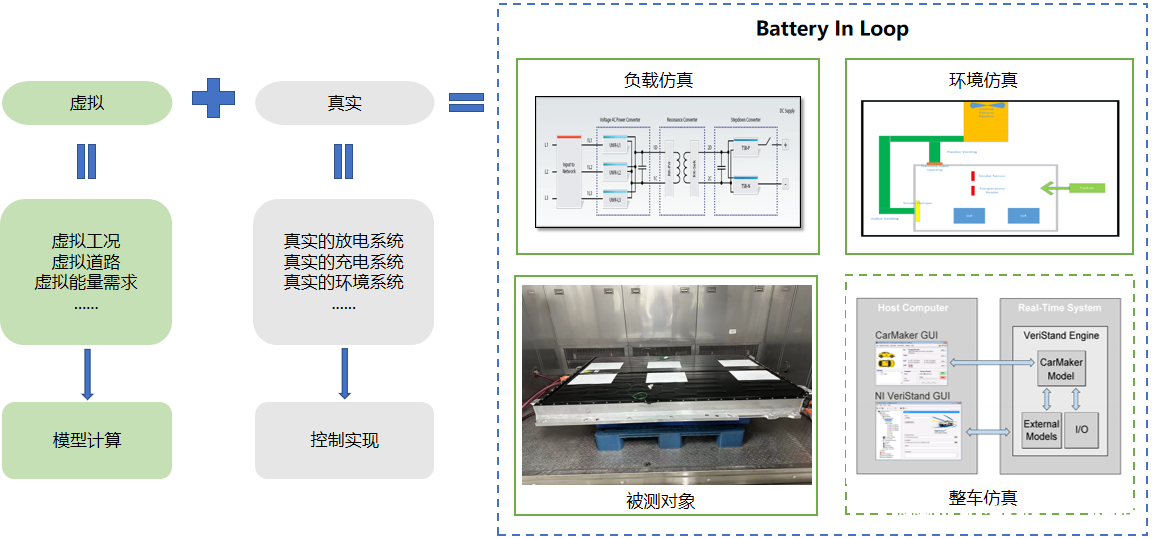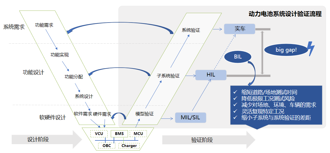 傳統(tǒng)面向信號級的HIL測試,在BMS功能策略驗證層面已經(jīng)很完善了,但是電池包性能驗證能力嚴重不足,這套BIL(Battery In Loop)測試解決方案針對的就是這個問題,該方案以提升客戶電池包性能試驗的真實性、可靠性為設(shè)計指導(dǎo),利用仿真與試驗聯(lián)合的方式進行,能夠彌補實車的道路/場地測試測試工況覆蓋面太窄的問題,其測試結(jié)果對解決實車測試在極限工況、危險工況下失效的難題也有一定的借鑒意義,填補了HIL測試到實車道路/場地測試之間的測試空白。