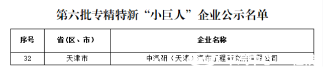 近日,根據(jù)工業(yè)和信息化部審核認(rèn)定結(jié)果,天津市工業(yè)和信息化局發(fā)布了第六批專精特新“小巨人”企業(yè)公示名單,中汽研(天津)汽車(chē)工程研究院有限公司(簡(jiǎn)稱“中汽中心工程院”)位列其中,榮獲國(guó)家級(jí)專精特新“小巨人”企業(yè)榮譽(yù)稱號(hào)。