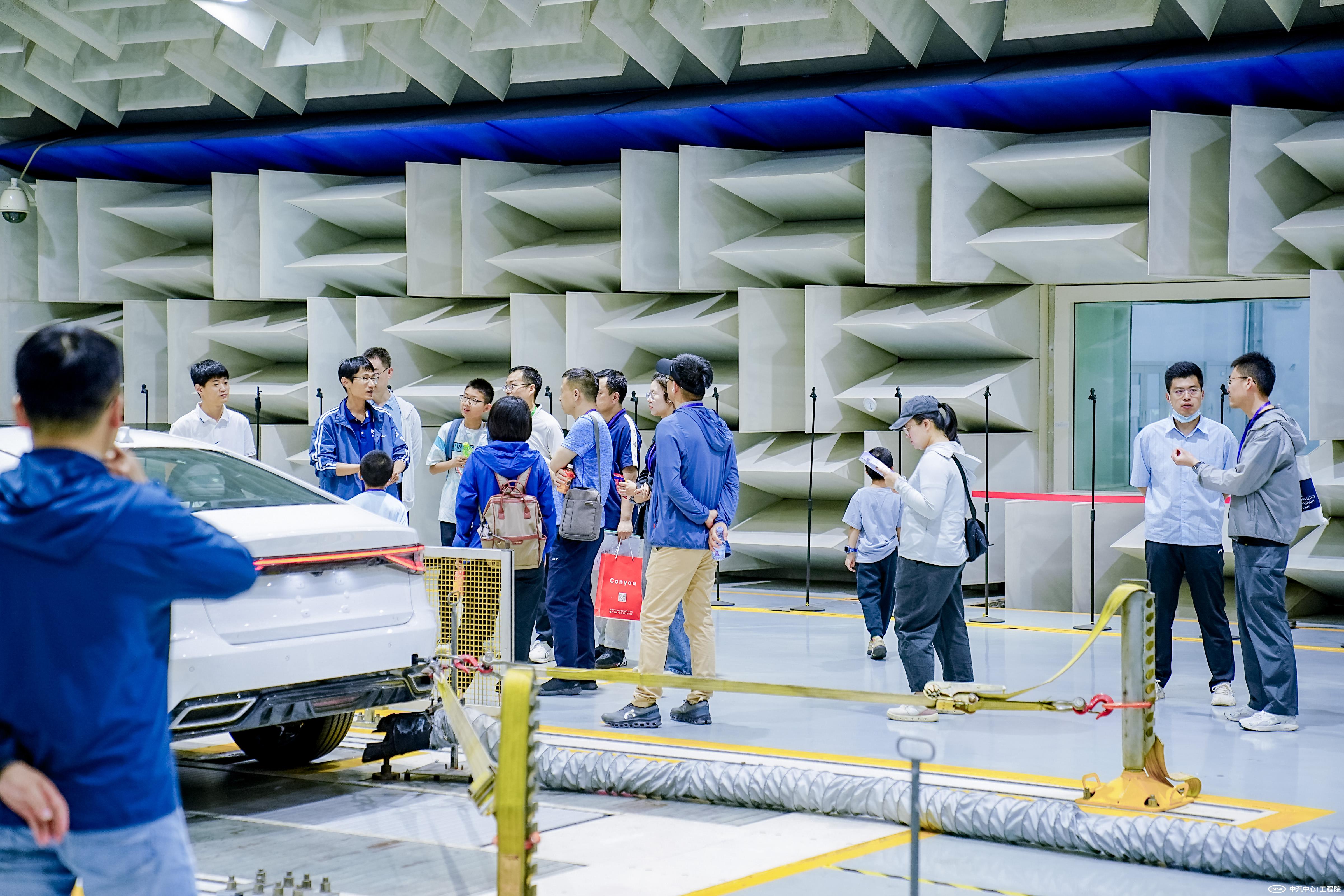 本次開放日重點打造了NVH實驗室沉浸式體驗項目,家屬們通過專業設備親身感受路噪主動降噪技術的神奇效果,在聲場復現技術中體驗影院級環繞音效。為保障體驗品質,整車半消聲實驗室和觸聽實驗室的相關技術團隊提前開展設備調試與場景搭建,10余名工程師在崗,為活動現場提供全流程引導服務。