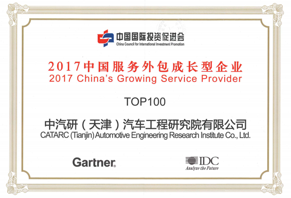 日前,中國國際投資促進會公布了2017年中國服務外包百強成長型企業(yè)名單,中汽研(天津)汽車工程研究院有限公司(以下簡稱“中汽研公司”)榮膺在列,獲得“2017中國服務外包百強成長型企業(yè)”稱號。