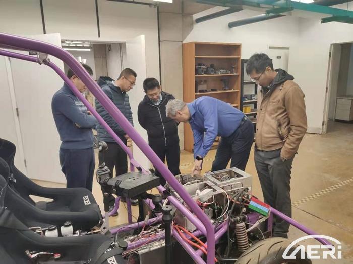 交流訪問(wèn)中,王新宇介紹了第三開(kāi)發(fā)本部底盤(pán)方向業(yè)務(wù)的轉(zhuǎn)型需求,并與Amir院士團(tuán)隊(duì)進(jìn)行了討論,探討潛在的合作機(jī)會(huì),并邀請(qǐng)我方代表參觀車輛機(jī)電系統(tǒng)實(shí)驗(yàn)室產(chǎn)學(xué)研融合成果。目前滑鐵盧方面在車輛動(dòng)力學(xué)這一領(lǐng)域主要的研究方向有:車輛底盤(pán)系統(tǒng)主動(dòng)控制與狀態(tài)估計(jì)、發(fā)動(dòng)機(jī)可變氣門(mén)正時(shí)系統(tǒng)、主動(dòng)懸架、智能輪胎、域控制器、有限場(chǎng)景自動(dòng)駕駛汽車等。