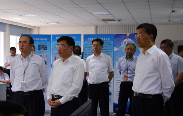 儀式后,苗部長和懷書記一行參觀了工程院27通道整車道路模擬試驗臺、輪胎性能試驗室、整車電子電器硬件在環仿真測試驗室。參觀后,中汽中心工程院院長高繼東向領導匯報了工程院及中汽中心(天津)汽車科創園的發展情況。苗部長對工程院的發展給予好評。