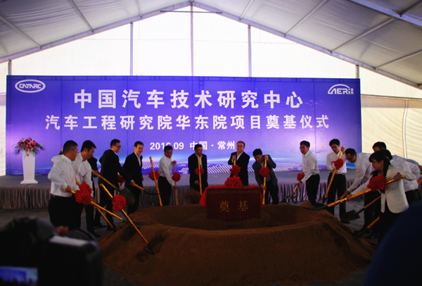 2016年9月29日上午,坐落在江蘇省常州市武進國家高新區(qū)的中國汽車技術研究中心(中汽中心)汽車工程研究院(工程院)華東院項目奠基儀式圓滿禮成。常州市市委書記閻立,常州市市委常委、市委秘書長蔡駿,常州市人民政府副市長、中共武進區(qū)委書記、武進國家高新區(qū)黨工委書記史志軍,中國汽車技術研究中心黨委書記于凱,中國汽車技術研究中心汽車工程研究院院長高繼東,中國汽車技術研究中心機械工業(yè)部汽車工業(yè)天津規(guī)劃設計研究院院長金濤等領導同志出席了奠基儀式。車和家信息技術有限責任公司總裁沈亞楠,車和家信息技術有限責任公司總工程師馬東輝,蕪湖凱翼汽車有限公司總經理助理、研究院院長盧禮華,江蘇金壇汽車工業(yè)有限公司總工程師劉強,華霆動力技術有限公司總裁周鵬等企業(yè)嘉賓應邀參加。奠基儀式由中共武進區(qū)委常委、武進國家高新區(qū)黨工委副書記、管委會副主任石旭涌主持。