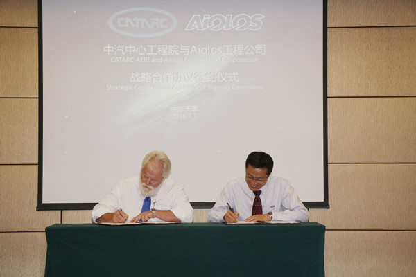 2016年7月7日,中汽中心工程院與加拿大 Aiolos Engineering 公司戰略合作協議簽約儀式在天津成功舉行。