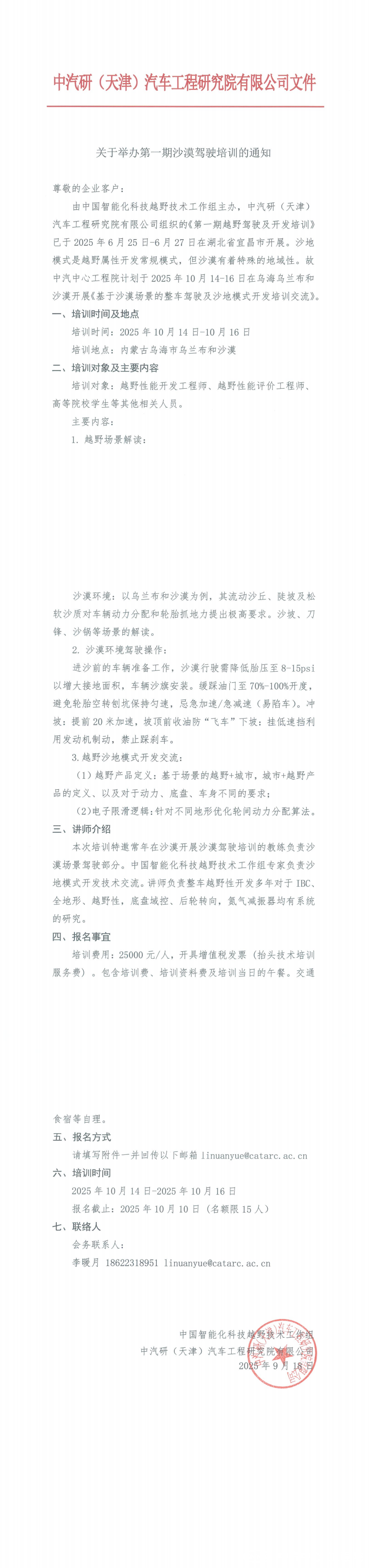 關于舉辦第一期沙漠駕駛培訓的通知