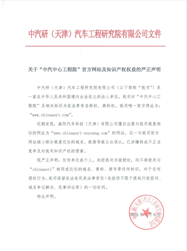 關于“中汽中心工程院”官方網站及知識產權權益的嚴正聲明